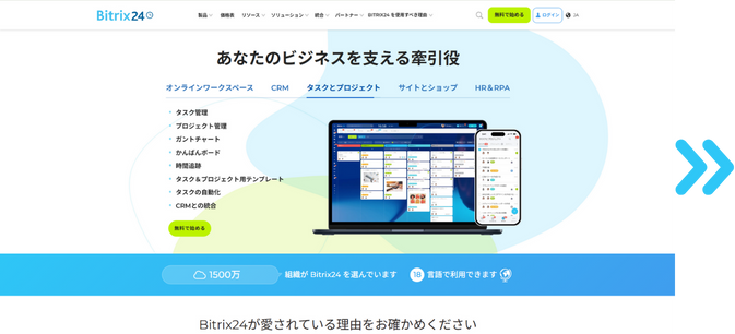 Bitrix24は、世界中の1,200万社以上に選ばれている、